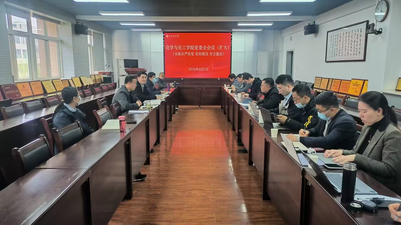 4月2日,化学与化工学院在临潼校区骊山校园召开党委会(扩大)会议,专题传达中省及学校全面从严治党会议精神,研究部署学院2026年党的建设和安全稳定重点工作。学院党委委员、纪委委员、班子成员、教师党支部书记、系(室)主任、工会主席、院长助理、团委书记、党建秘书、学科秘书、研究生秘书、外事秘书参加会议。学院党委书记肖阳主持会议。