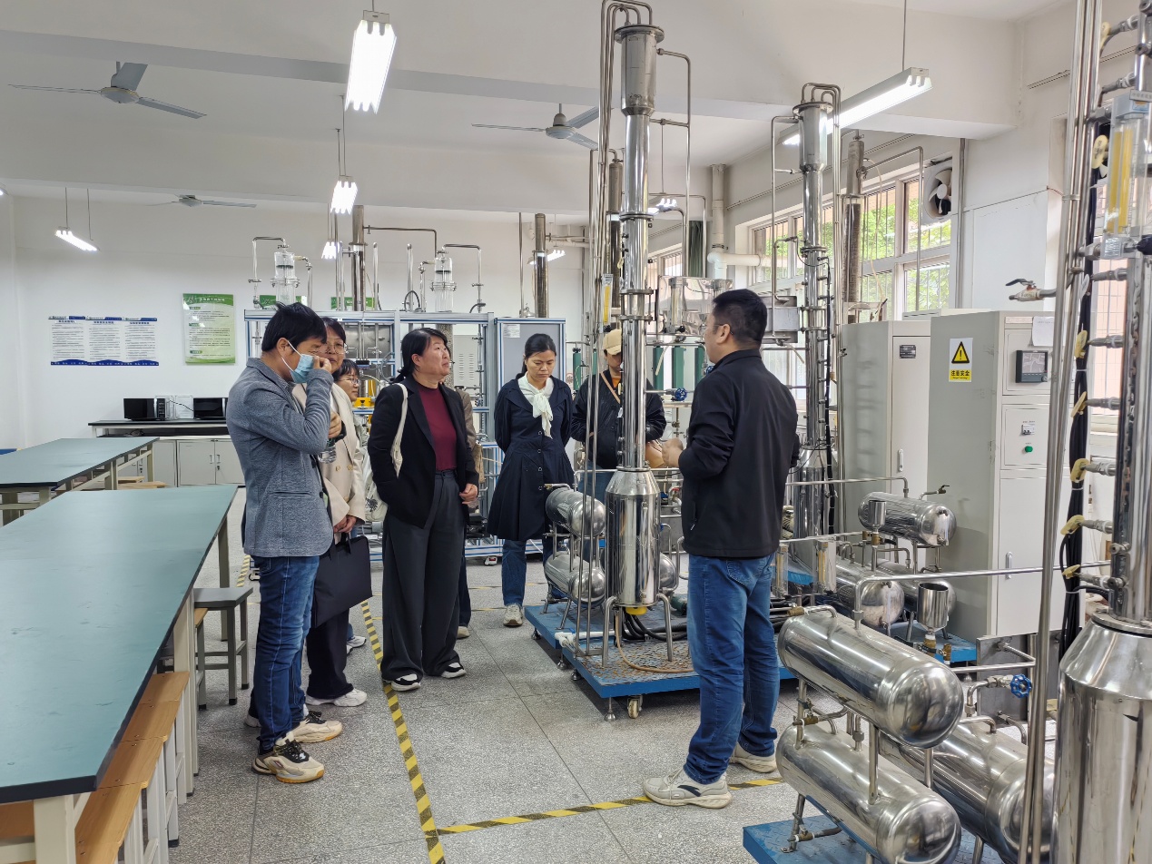 座谈结束后,高新六中教师团队参观了我院工科化学、无机及分析化学、有机化学、物理化学等基础实验室。实验内容与高中化学课程高度契合,老师们围绕实验装置、操作规范、教学难点等展开深入交流,认为实验室建设对落实高中实验探究素养具有重要参考价值。随后,大家还参观了化工原理实验室与矿物加工实验平台,近距离了解典型化工设备,拓宽了工程教育视野。